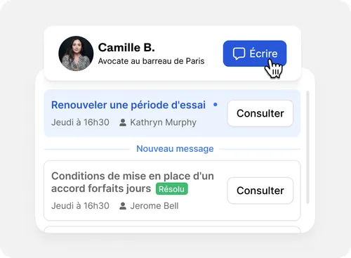 Vous avez accès à une avocate partenaire dédiée, expérimentée en droit du travail et experte sur votre convention collective.
