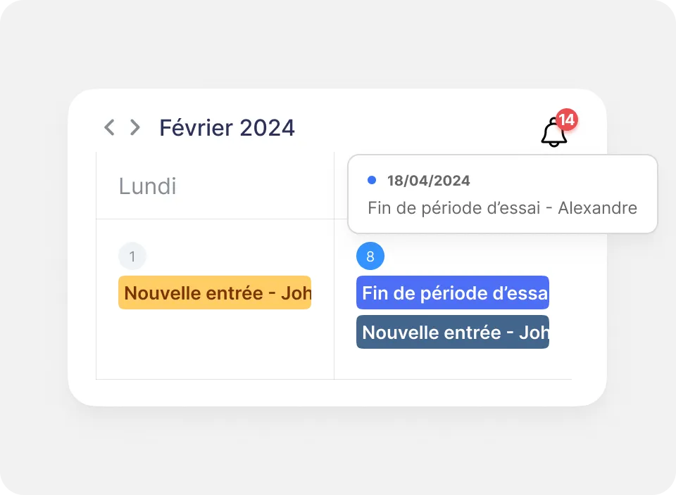 Les évènements légaux de vos documents RH sont automatiquement intégrées dans votre agenda juridique. Vous ne ratez aucune échéance et restez en conformité.